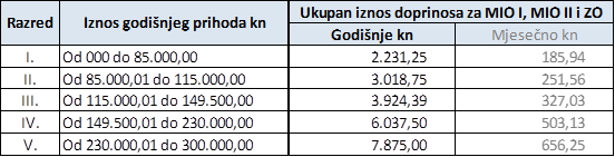 Obveze za doprinose plaćaju se mjesečno i dospijevaju 15.dana u mjesecu za prethodni mjesec.