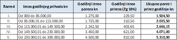- Porezna osnovica i iznos poreza definirani su (kao i do sada) po razredima prihoda, koji se nisu mijenjali, a obrazac ima priloženu tablicu u kojoj se može pronaći i jednostavno prepisati.