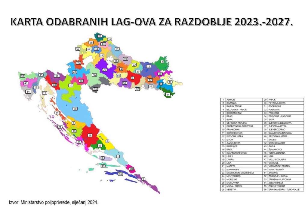 Na poveznici možete preuzeti popis svih LAG-ova, s podacima o teritorijalnom obuhvatu, broju stanovnika i dodijeljenim sredstvima.