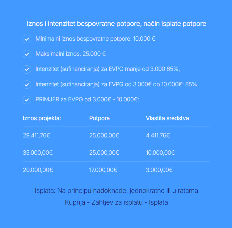 - Maksimalni iznos potpore po jednom projektu: 25.000 €